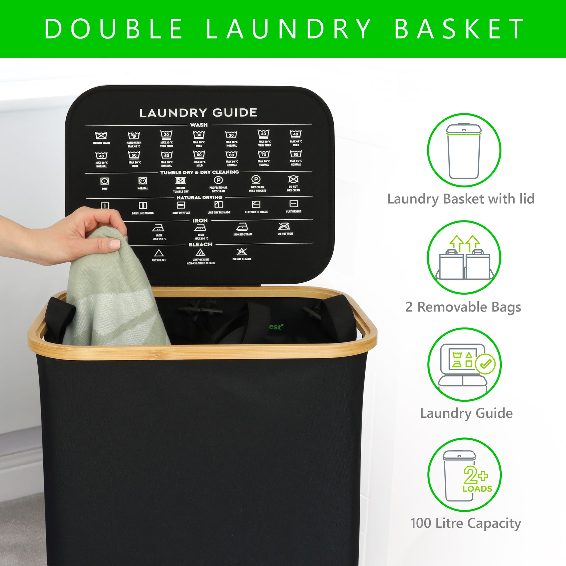Double laundry basket - 2 sections to easily sort washing. The two removable inner bags allow you to separate light and dark ready for conveniently carrying to the washing machine. No need to empty your clothes onto the floor!